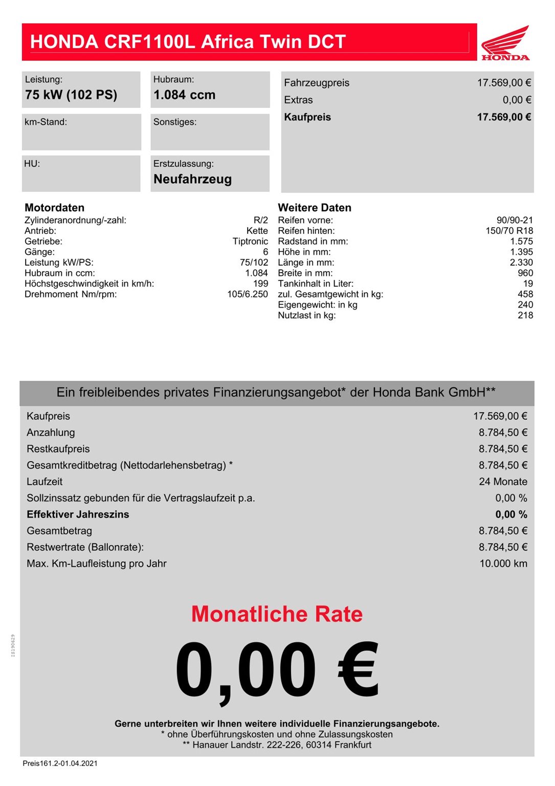 Honda CRF1100L Africa Twin DCT - sofort verfügbar